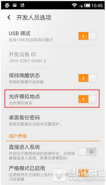 如果手机没有root权限时,请打开手机的系统设置,选择「开发人员选项」,将「允许模拟地点」设置为开启状态。